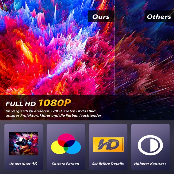 Mini Projector: Portable, cost-effective, 180° projection angle, portable projector with wireless connection & mobile device compatibility for movies